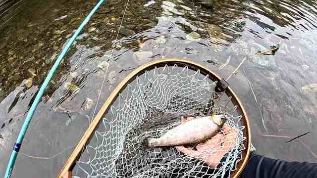 神子内川に入渓しようと入渓ポイントを見て回りましたが皆さん同じ考えらしく早くから入渓されており下流に移動。ここならと入渓したポイントで早速反応がありました。23cmほどのニジマスキャッチ!しかしその後は良いポイントでも反応なくおかしい・・・やはり先行者がタッチの差で入られていてあえなく退溪。