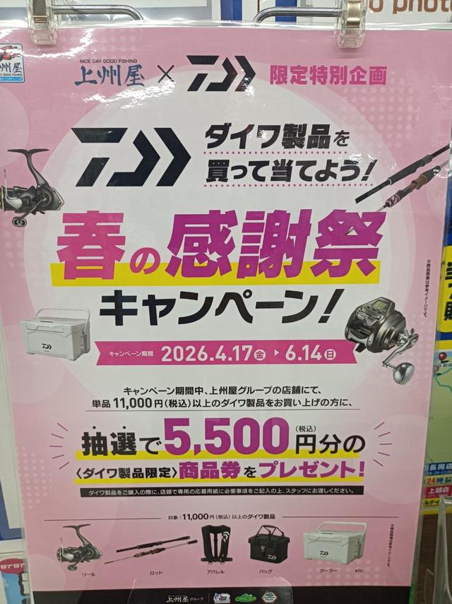 2026年3月14日おすすめ商品 【ミッドスッテMD40Sソフト】 出典: 出典: ダイワよりマルイカ用スッテ【ミッドスッテMD40Sソフト】入荷しました♫常磐ヤリイカもそろそろ終盤、、次のターゲットはマルイカですね!プニプニとした感触で、マルイカもイチコロですよー! 上州屋からのお知らせ ・会員証機能を搭載!お買い物や釣りの準備がもっと便利になる上州屋“公式”アプリ登場!・【上州屋メンバーズカード】毎月5の付く日と30日(5日、15日、25日、30日)はポイントアップデー!
