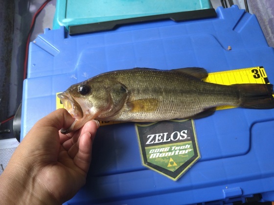 上流に行くと濁りも無く、サイトで狙える感じです。『サイコロラバー』『RVバグ』で狙うもサイトになれていない為2バラシ。本湖が濁っているのでたくさんの釣り人が居るのでそのまま下りながら『レイジースイマー』でサーチして行くと数回バイトはありますが、キスバイトや見切られて掛ける事は出来ず本湖に戻って来ました。時間も無かったのでつばきもとボートさん対岸のカバーを探ると数回バイトが取れ、1本釣ったのは痩せていましたが30ちょいバス!しかも着水と同時位にバシャっと出ました。