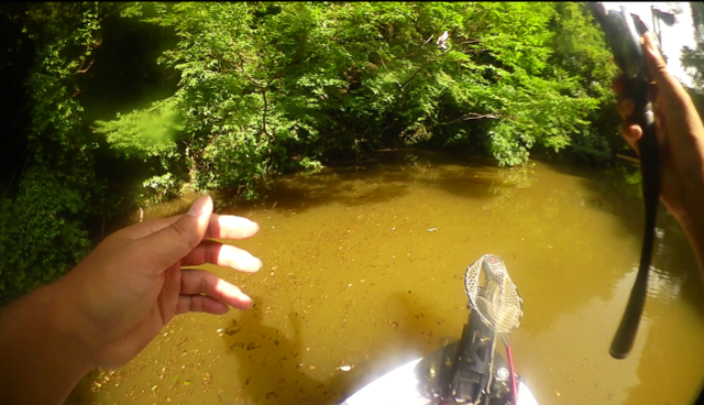 いつもお世話になっております松下ボートさんを出て近くの月毛沢・道路下・道路下対岸・川晴ワンド等のカバーを軽く『HP3Dワッキー』のネコリグで打って行くもバイトは無い為、水質が良さそうな折木沢上流に向かいました。