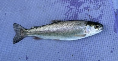 終了間際松下ボート前の一緒に行った仲間が放流ニジマス君を釣ってました。