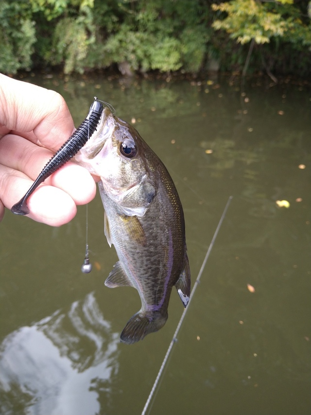 最近の亀山ではターンをしていてかなり厳し状況。とりあえず野村ボートさんより出発し藤林周辺のカバーを打って行きますが、バイトも無く水が良くないので、柳島のブレイクを狙うも反応なし。そのまま『よりとも島』に移動し崩落あ値にOSP:HPシャッドテール2.5(ブラック)2.7gのダウンショットで狙うと15センチ?位のチビバス君が喰ってくれました。その後バイトも無いので笹川に入るも何もなく終了となりました。