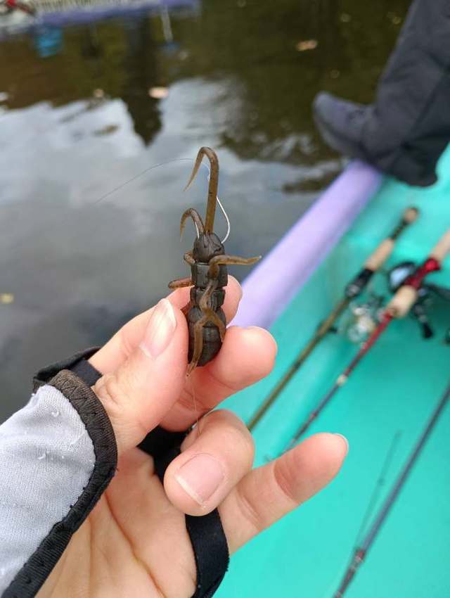 やはり全体的に厳しい釣果でしたが折金さんや他のスタッフもしっかり釣ってきていました。折金プロはシャッドや最近流行りのオリカネムシⅡのダウンショット等で釣っておりました。他のスタッフもドゥルガ、HP3Dワッキー、ドライブクローなどOSPルアーが大活躍でした!!