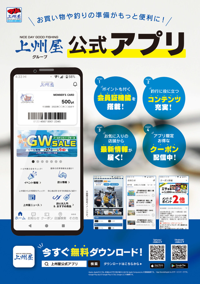 2026年1月21日おすすめ商品 ZAPPU★バスルアー入荷!! ZAPPUより『マグナムブレディー』が入荷!皆様のご来店お待ちしております。 出典: 出典: 上州屋からのお知らせ ・会員証機能を搭載!お買い物や釣りの準備がもっと便利になる上州屋“公式”アプリ登場!・【上州屋メンバーズカード】毎月5の付く日と30日(5日、15日、25日、30日)はポイントアップデー!