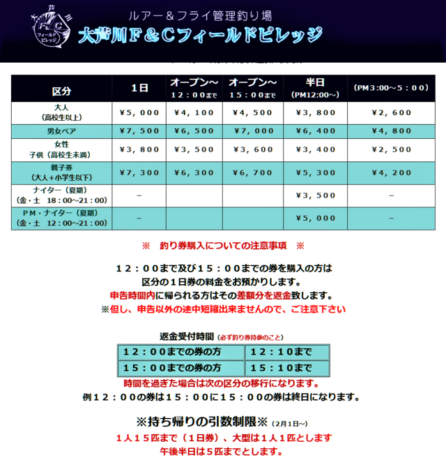 大芦川F&Cフィールドビレッジよりエサ釣り開放の案内がありました!