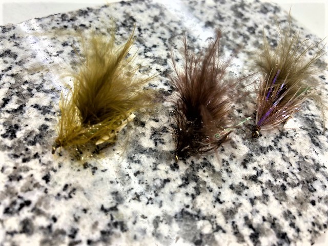 毛鉤のカラーはオリーブやブラウンのダーク系が鉄板です。