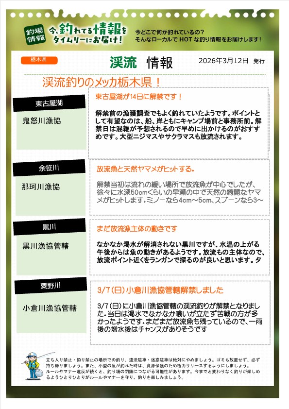 鹿沼店:西大芦川漁協入漁券が入荷しました!