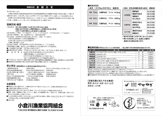 鹿沼店:小倉川漁協入漁券が入荷しました!