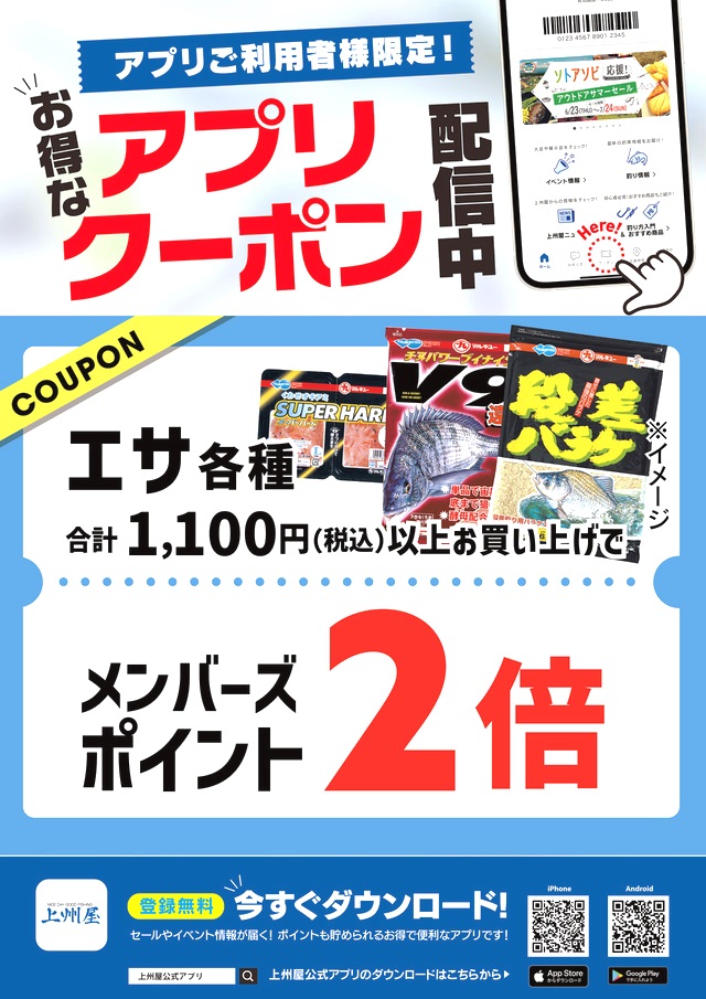 釣りエサ購入の際はポイント2倍クーポンのご使用をお忘れなく!!