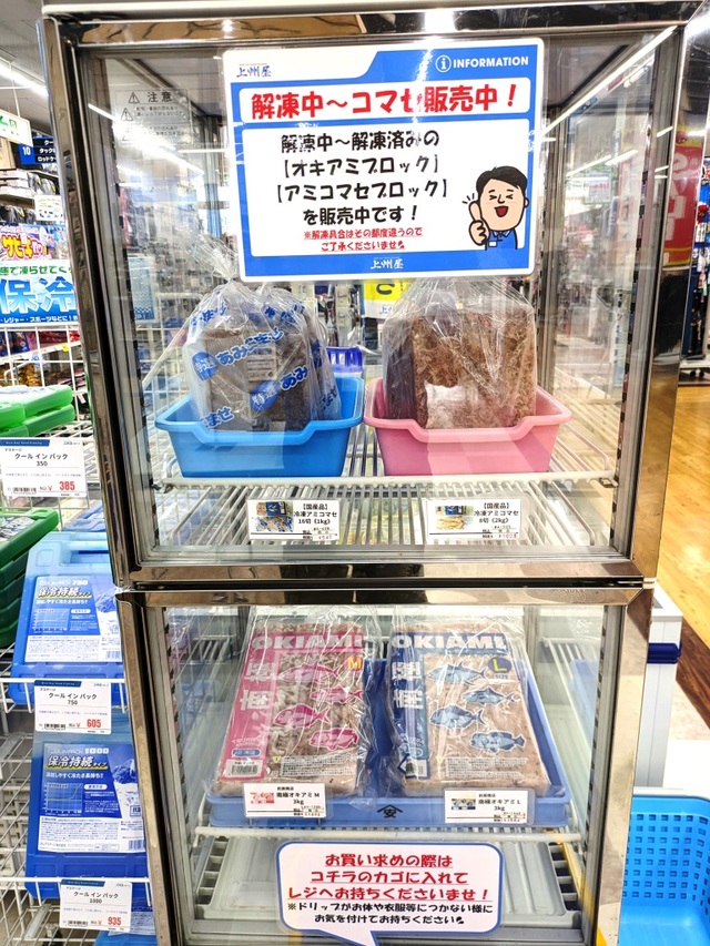 当店でも釣り場でスグに使えるように解凍中~解凍済みのオキアミ・アミコマセのご用意を始めました~!!