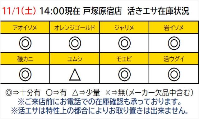 11/1(土)14:00現在の釣りエサ入荷状況のご案内です!!