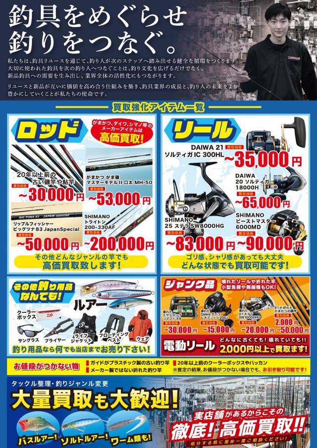 ぜひ、この期間にご不要になった釣り具をお持ちください。高額査定で軍資金ゲットです♪
