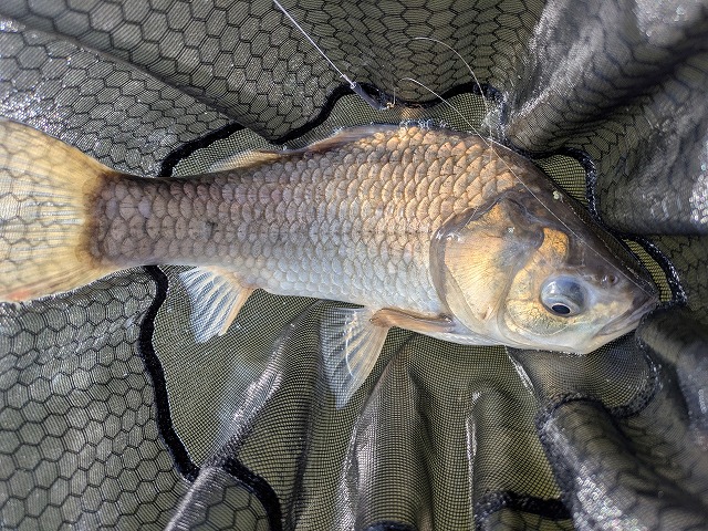 ダンゴは大きめに付けて抜きながらアタリを待ち、早めの打ち返しで何回転かするとスパッとした鋭いアタリが出はじめ、こちららが正解だったようです。
