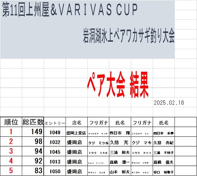 2025年 岩洞湖ペア大会・シングル大会(2月15日・16日開催)速報~