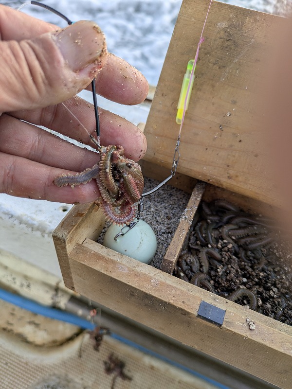 いつも通りに「丸オモリ」に「イソメは短めたっぷりと」