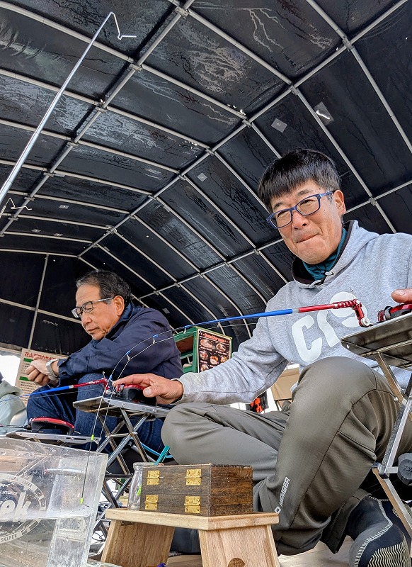 それでも毎シーズンお顔を拝見する常連の方や同船の方とのお話で楽しい「花山湖ドーム船ワカサギ」スタートとなりました!