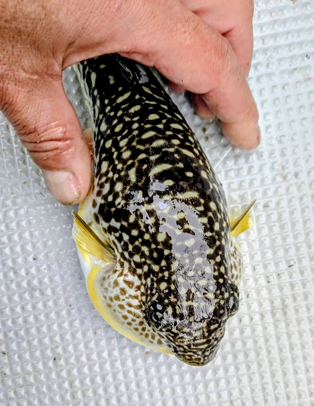 水深の深いポイントですが、そんな所でもまだ海水温が高いせいかフグの猛攻・・