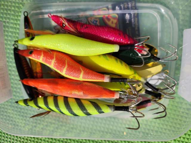 タコエギはシマノタコマスターフラッシュブーストに上州屋オリジナルタコエギ。