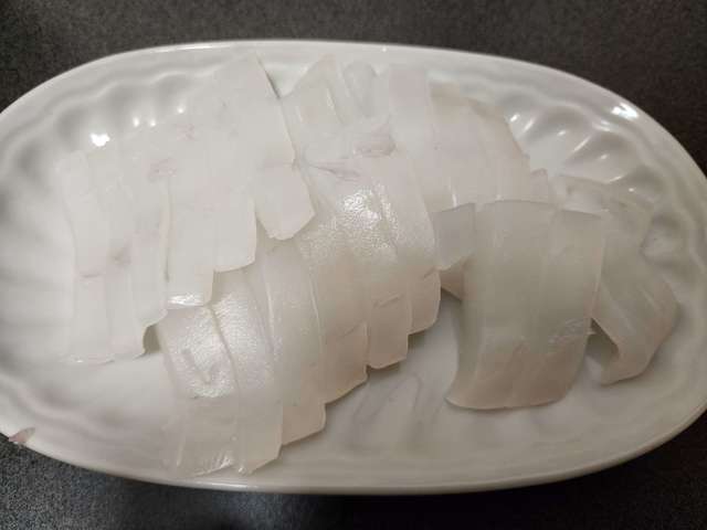 アオリイカの個人的には美味しい食べ方はお刺身にしてキムチの素を混ぜて食べるのが美味しいです。