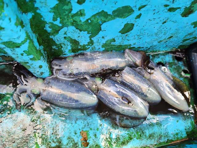 朝から船中ポツポツの当たりがあり自分にも小型ながら本命のアオリイカ。