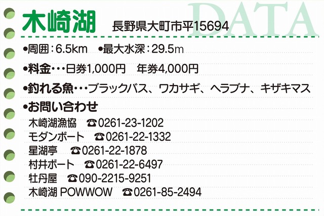 仁科三湖の一つ木崎湖は、主にブラックバス釣り、ワカサギ釣りが楽しめるフィールドです!