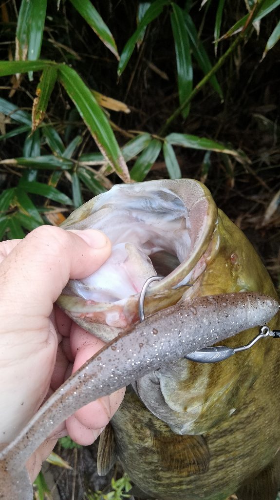 ノーシンカーリグでも容易に安定して泳がせられるヨコ扁平シェイプはあえて採用せず、バスから見たシルエットが、本物の小魚に近いタテ扁平のスリムシェイプであること。最初に水を受けるヘッド部分のみヨコ扁平、そこから低重心化したタテ扁平シェイプに移行することにより、リアルな視覚効果とスイミングの安定性を両立しました。