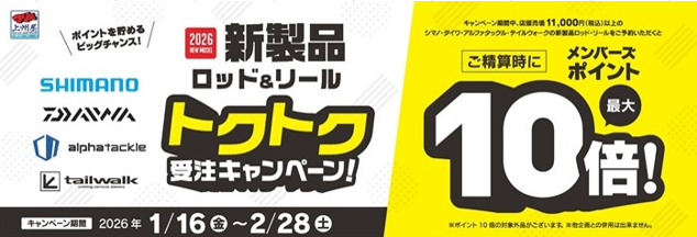 ※只今、上州屋各店では各メーカー2026年度新製品(※注)の予約を承っております。詳しくは店頭にてスタッフまでお気軽にお尋ねください。(※注:メーカーにて公式に発表済みの新製品に限ります。釣りフェス発表後からご予約スタートとなる製品もございますので、予めご了承ください。)