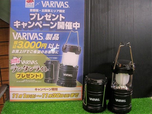 バリバス製品を税込3.000円(1回のお支払いに限ります)以上お買い上げでご希望のお客様にVARIVASロゴの入ったランタンライトをプレゼント♪