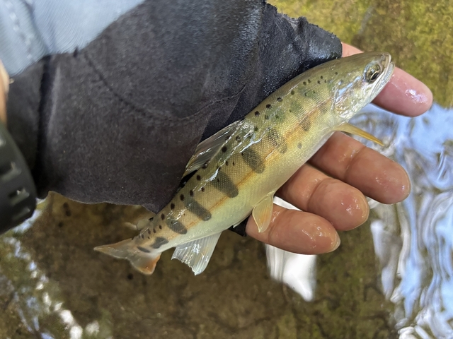 別河川でようやくお目当てのヤマメをキャッチ!
