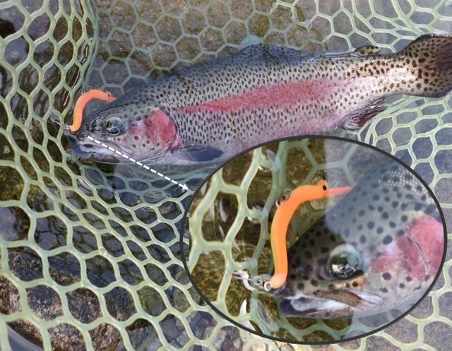 スローな巻きで攻めると、ボディが大きめなせいか、ちょうどいい場所に口を使ってくれず。要するにバイトはあれどフッキングに至らない…