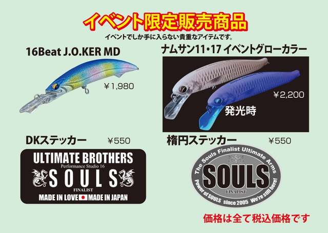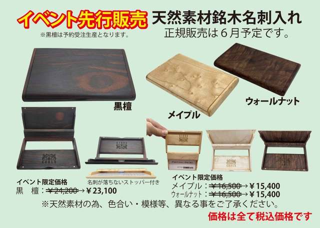 *当日はイベント先行発売の「天然素材銘木名刺入れ」やイベント限定ルアー、イベント限定のアパレル用品などなど、イベントでしか買えないアイテムを多数ご用意!