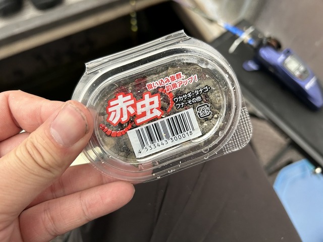 今回はパック入り赤虫を使用。持ち運び、保存も楽なところがオススメです!