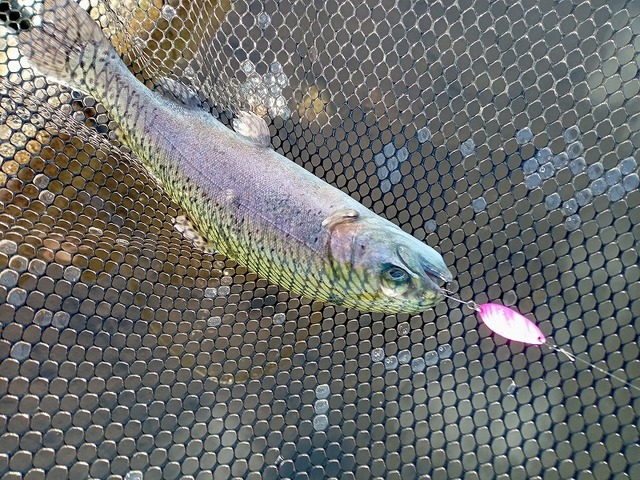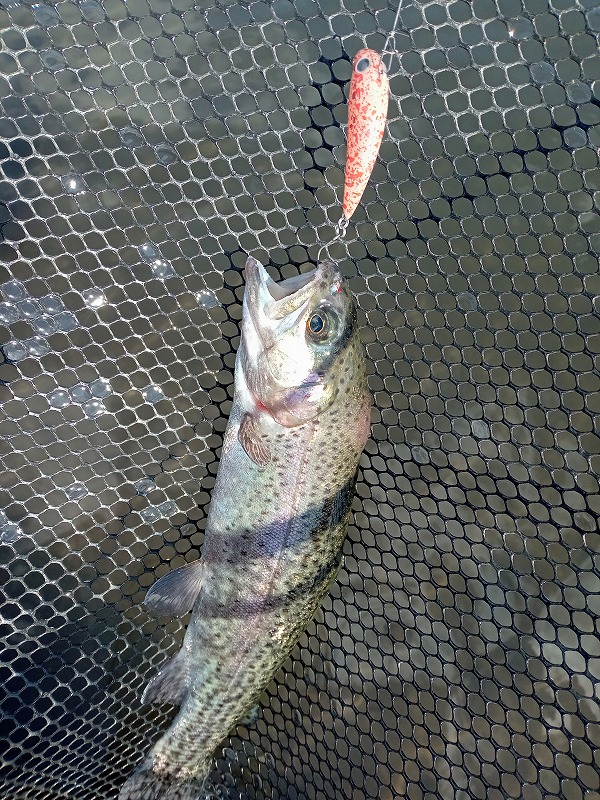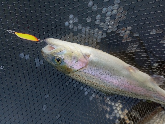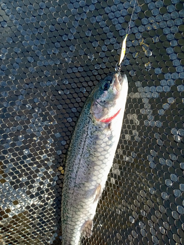 この日は大会が行われた翌日だったため、大会放流の残存狙いでオレキンカラーのスプーンからスタート!