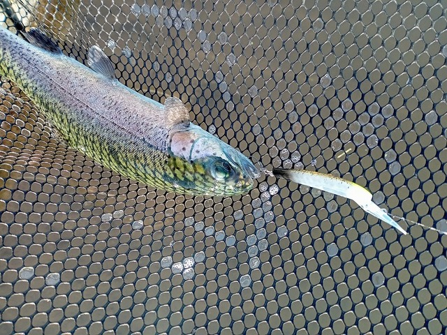 夕方の魚が浮いてきた時間帯は「イーグルプレーヤー 50slim/GJ」や「ダイバライズ 45F」等の浮上系ミノーが良かったです♪