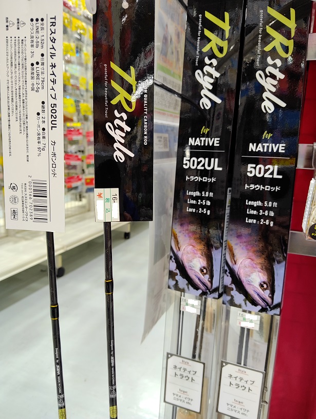 また、ビギナーにオススメのロッド「TRスタイル」のネイティブシリーズもお手に取って調子を確認できますので、ぜひ店頭でご覧くださいませ。