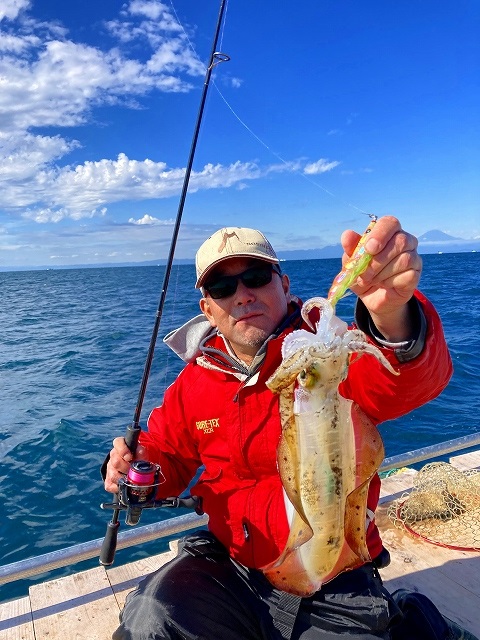 この日もエギングにチャレンジした佐島店の和久井店長が4杯のアオリイカをキャッチしました^^。