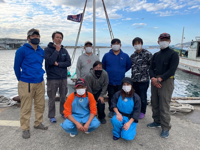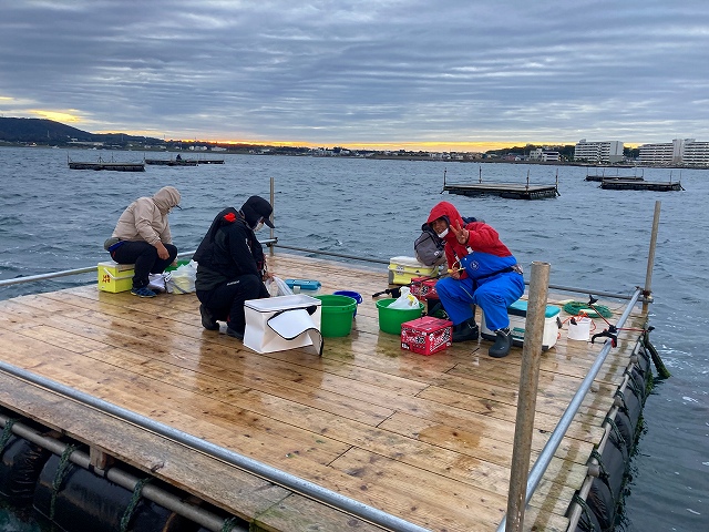 イカダは揺れも小さく、1基当たり4人ほどで ゆったりと釣りが出来ます。