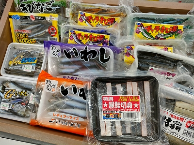 キビナゴやイワシ、サンマやサバ、銀鮭の切り身など 針のサイズに合わせてお選びください。