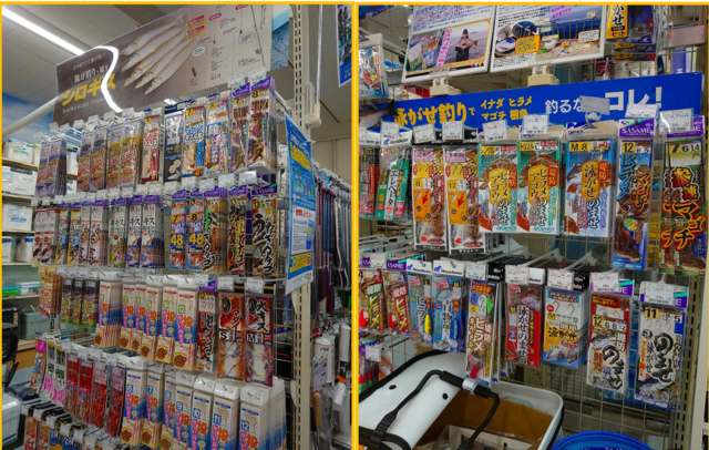 当店にはシロギス狙いの仕掛けの他、マゴチ狙いに釣った魚を活きエサに使う泳がせ仕掛け、ルアーではメタルジグの他ワームやフック、シンカーもバッチリ揃ってます。