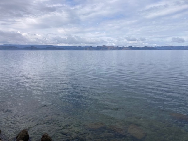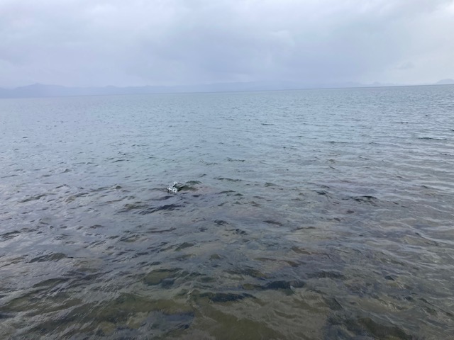 最初の2時間は若干の風があるものの鏡のような湖面・・・。