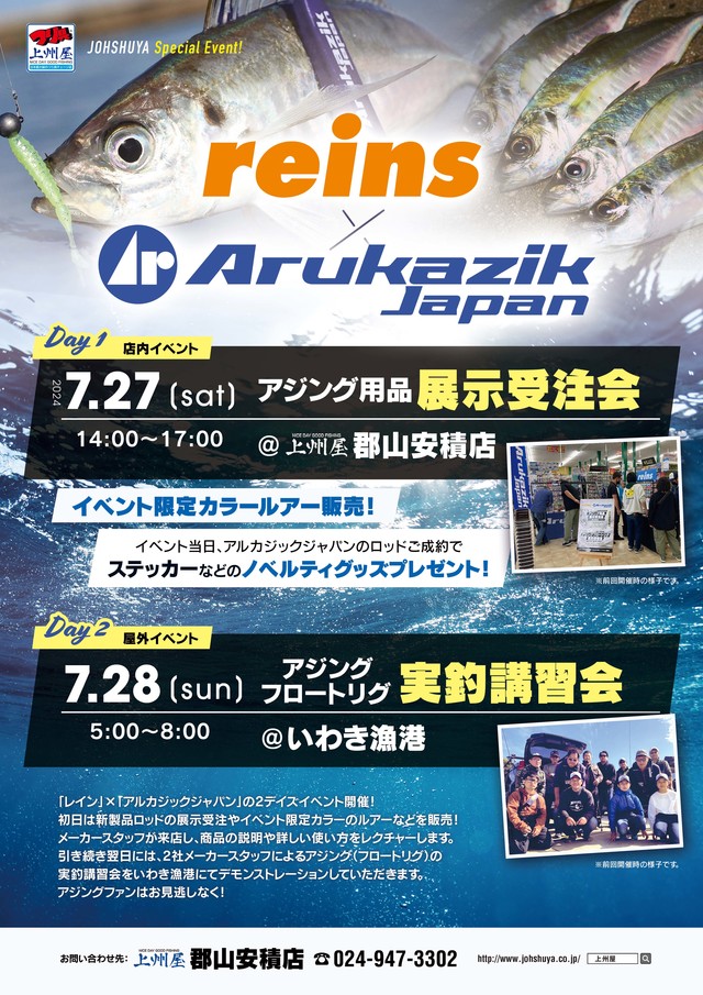 レイン×アルカジック 展示受注会&実釣講習会開催決定!!