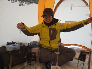 氷の厚さは1m程でドリルは延長ないとかなりきつい感じです。