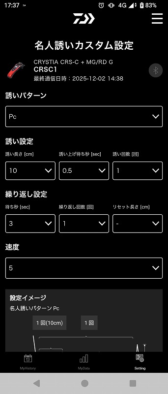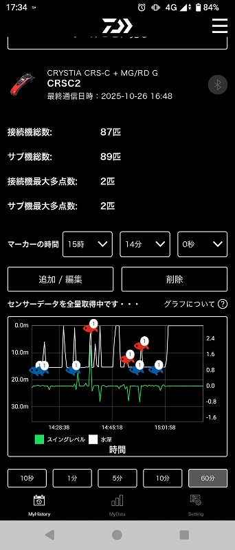 更にコネクテッドシステムでその日の水深、誘い幅、何時に何匹釣れたかの記録も可能!