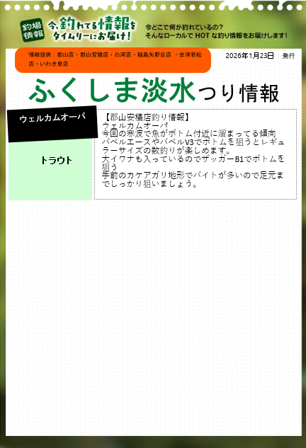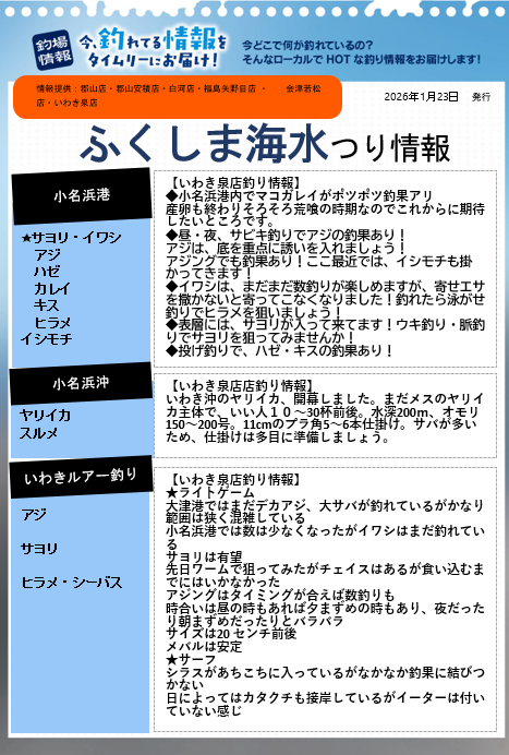 福島釣り情報(1/23)