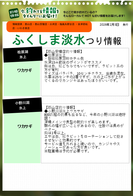 *秋元湖2/6・7氷上クローズですのでご注意ください。