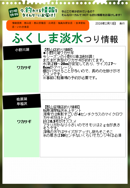 氷の状況など日々変化していますので予約や釣行の際は事前にご確認ください。
