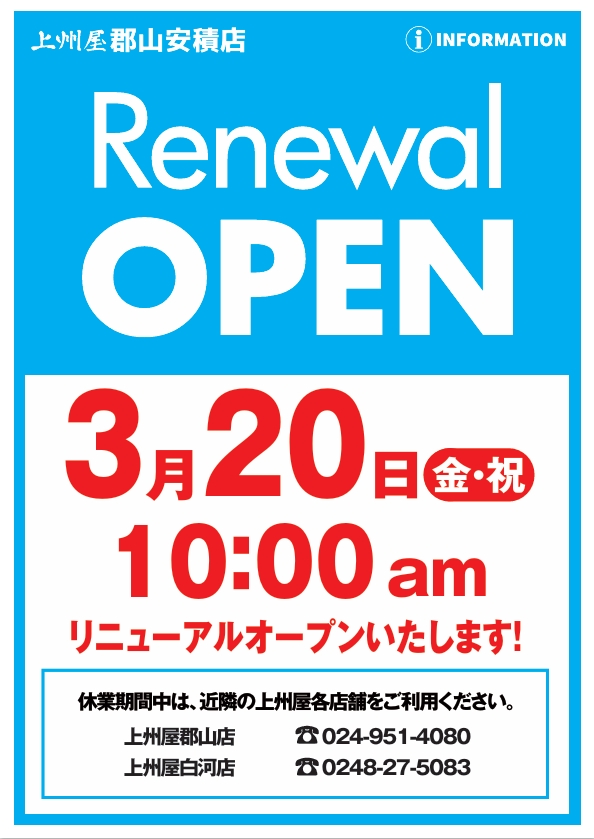 いつも郡山安積店をご利用頂き誠にありがとうございます