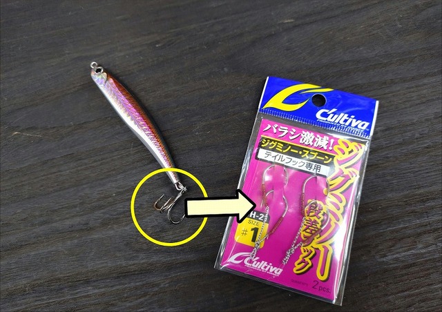 デフォルトはトレブルフックですが、スイミングアシストフックに変えてもOK!