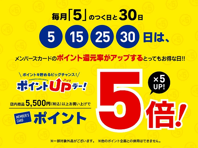 毎月5の付く日と30日(5日、15日、25日、30日)はポイントアップデー!