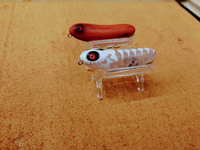 一押しはウッドパターンをフルに生かしたブラッドウッドフランク。何度見てもウッドにしか見えない仕上がりと、何処でも魚種問わず安定した釣果を生むクリアー系カラーのラメクリアー